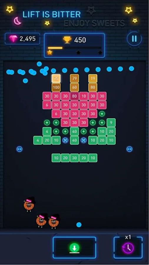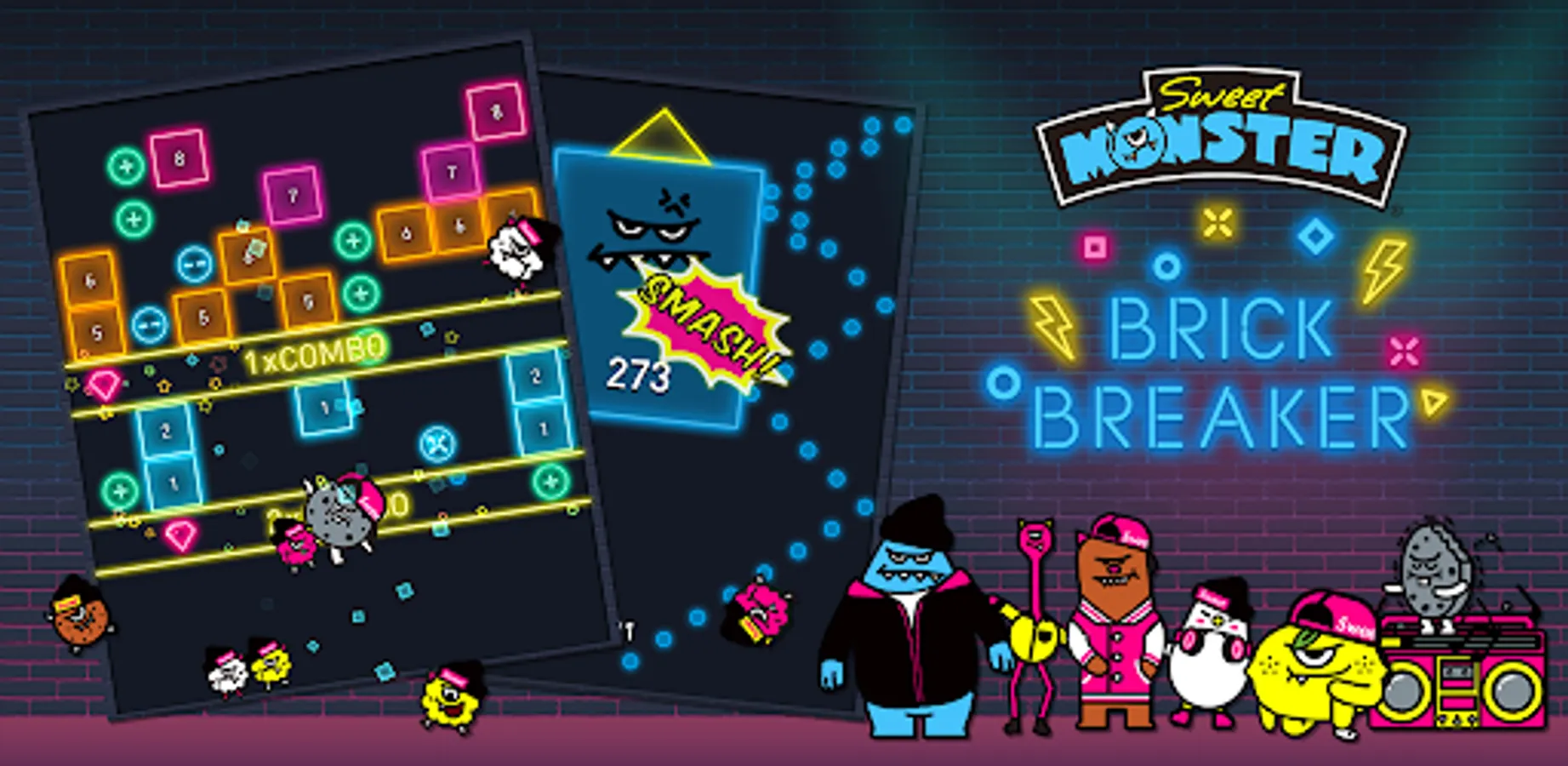 BlueMon Brick Breaker is a casual game to kill time where players get rid of the neon-colored blocks on the screen and clear the stages.
