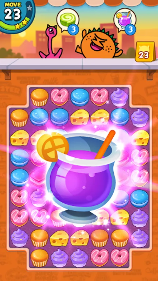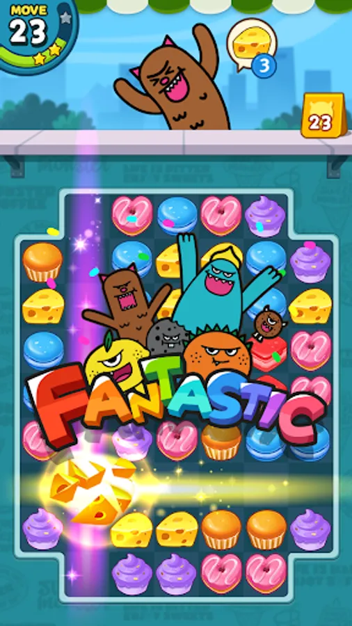 • A delicious match 3 puzzle game with cute characters
