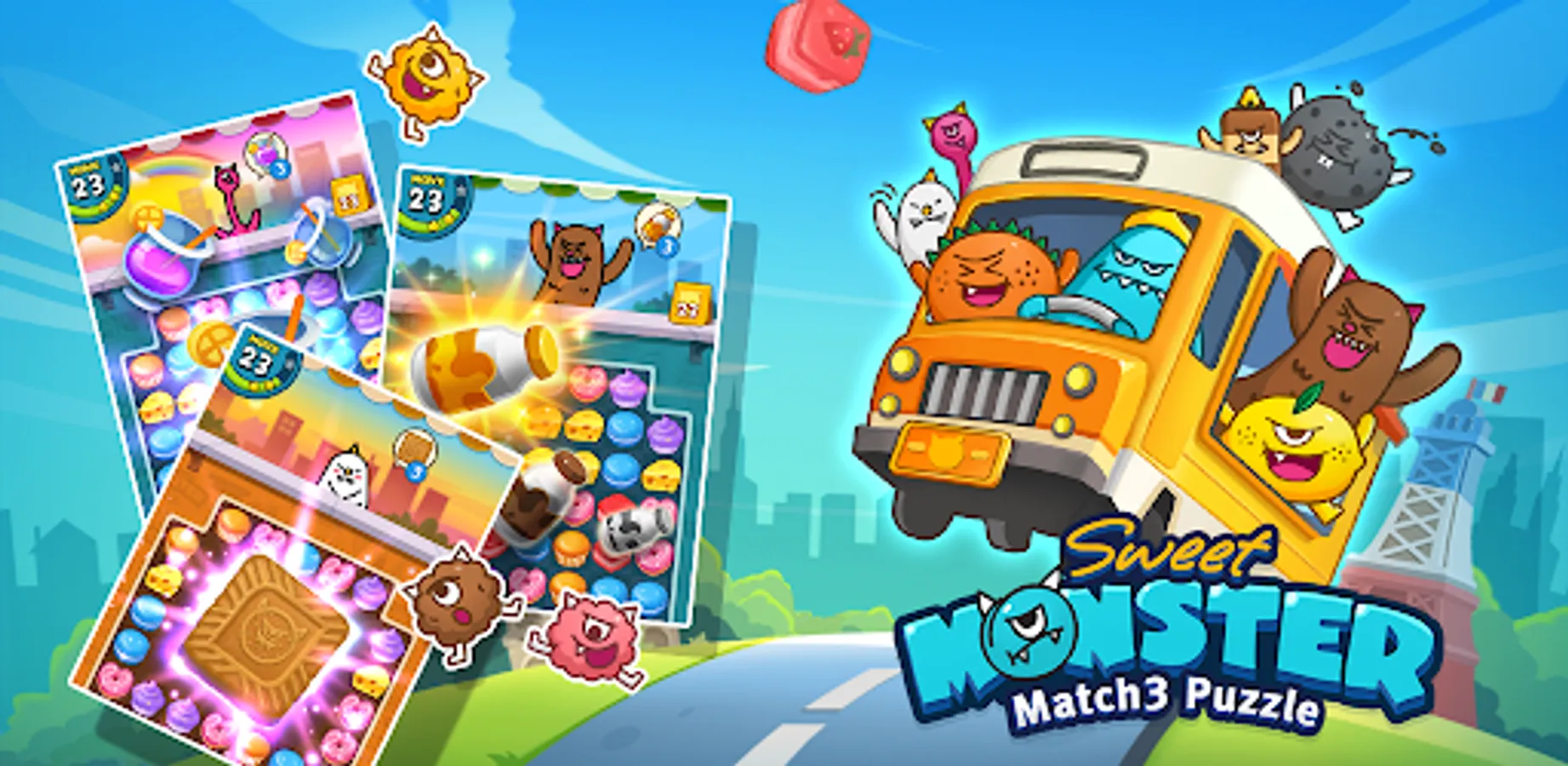 Easy and fun match 3 puzzle game! - Sweet Monster™ Friends Match 3 Puzzle | Swap Candy!