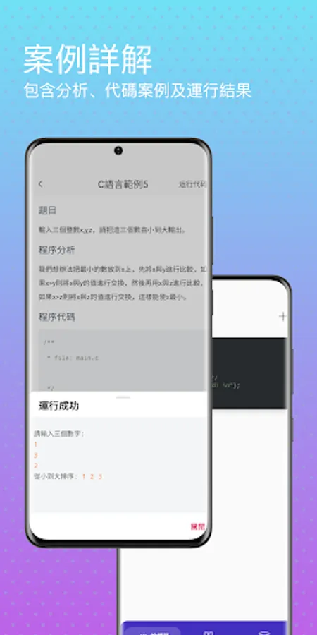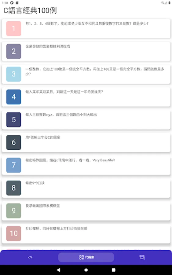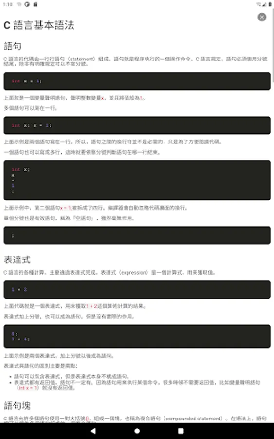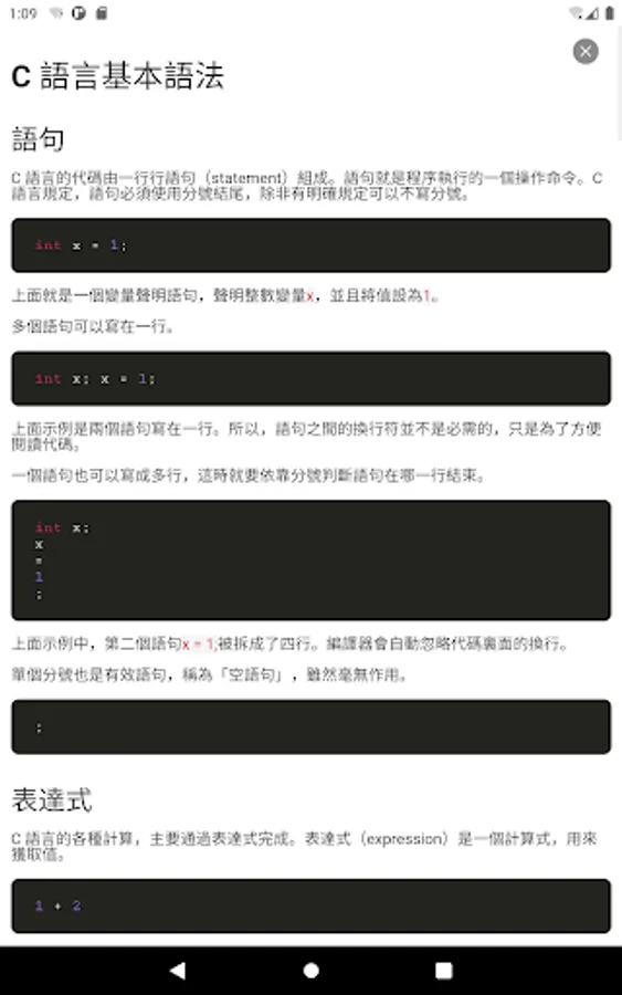 The C language compiler is a streamlined but well-functioning APP. It mainly provides core editing and compiling functions for beginners in the C language. It can verify some small programs anytime and anywhere, and solve doubts for yourself. The software includes a wealth of content, such as C language syntax, data structures, algorithms, etc., from basic knowledge to advanced knowledge. Whether you are a college student or an in-service employee, this software is of great help to improve your programming ability.