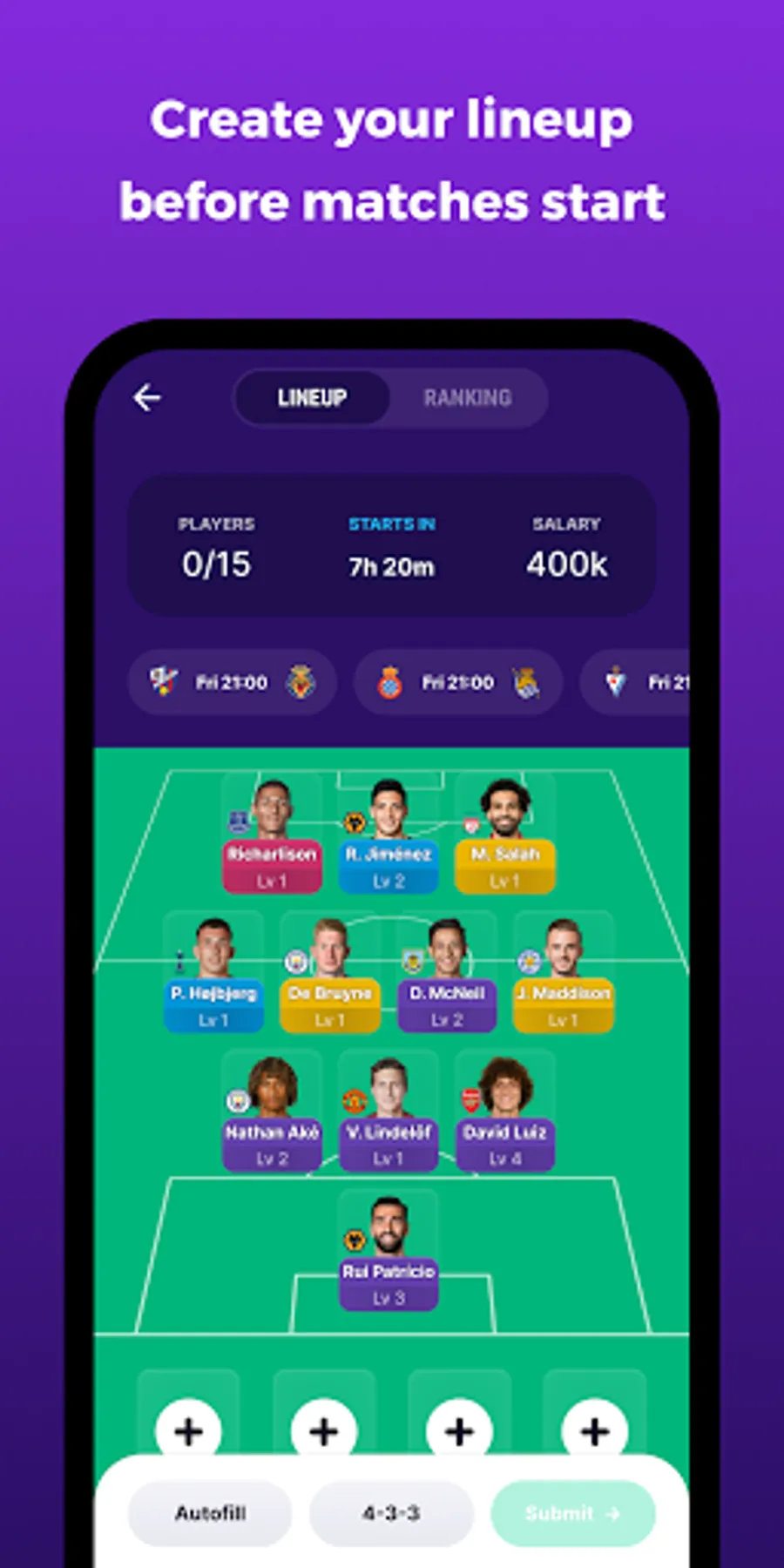+ Pick 11 starting players using your players with the available budget before the real football matches start ⏱