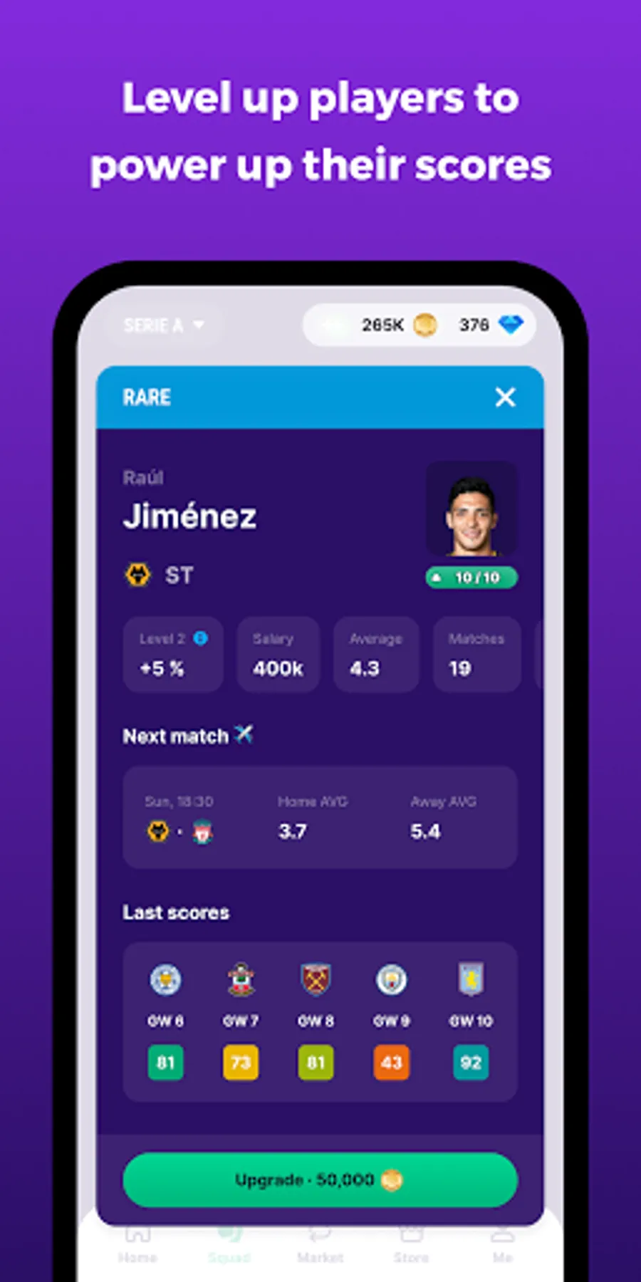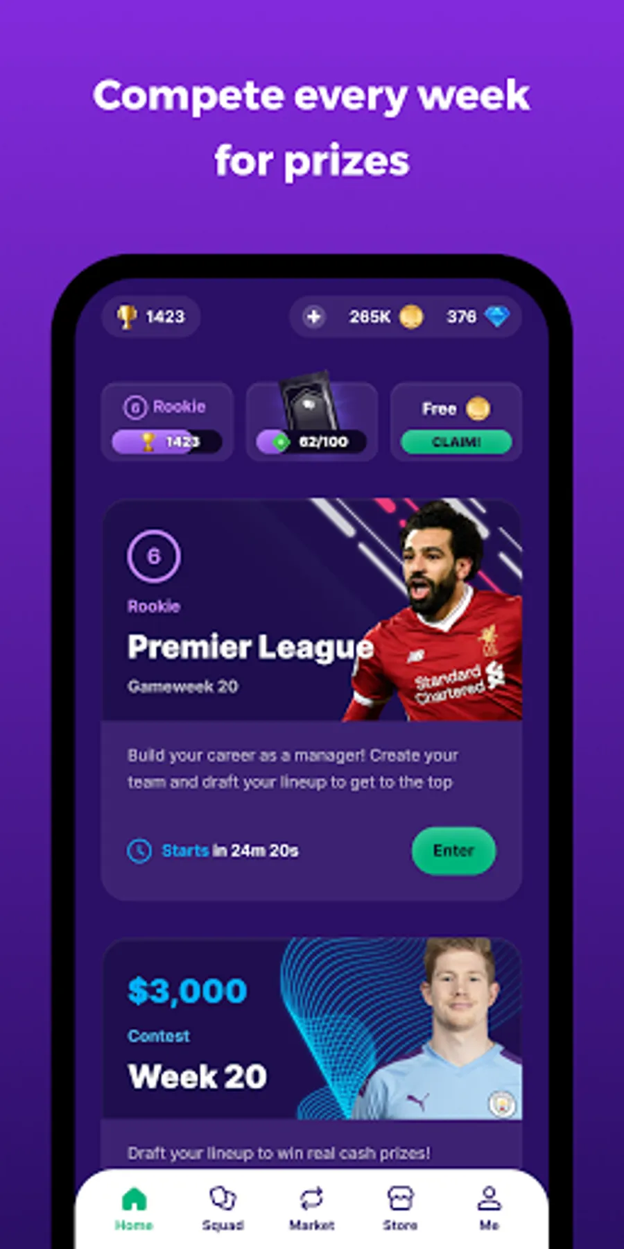 How well do you know the Premier League? This free fantasy manager for EPL is designed for players who have high knowledge from the Premier League and can predict which players will have better performance. In each week, based on your budget, you get to choose your line-up and keep an eye on their real-time football performance. You will receive points along with card packs as soon as all the weekly matches are completed.