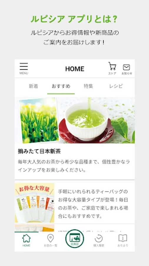 This is the "LUPICIA Official App" that makes shopping at Lupicia, a tea shop around the world, convenient and convenient.