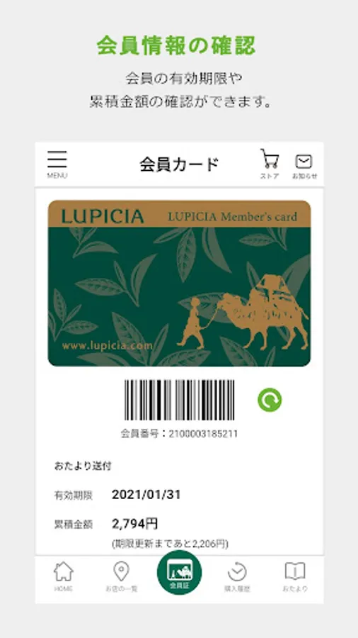 As a "Lupicia member", you can receive services such as checking the expiration date of various services such as preferential treatment and updating the deadline for sending mail.