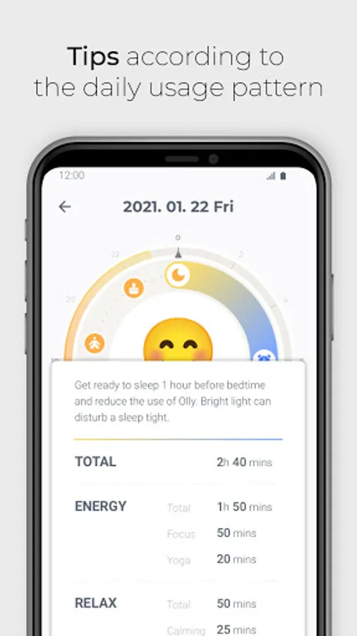- If you want to change the habit of sleeping late and waking up late, replenish insufficient light with Olly consistently, using 2-3 times a day after you wake up until before the sun sets. If you have to do something that requires concentration at night, enhance your concentration with Olly Day instead of coffee that makes you alert faster and doesn’t interfere your sleep afterwards. If you want to change your irregular daily schedule, wrap up your day with Olly Night once the sun sets.