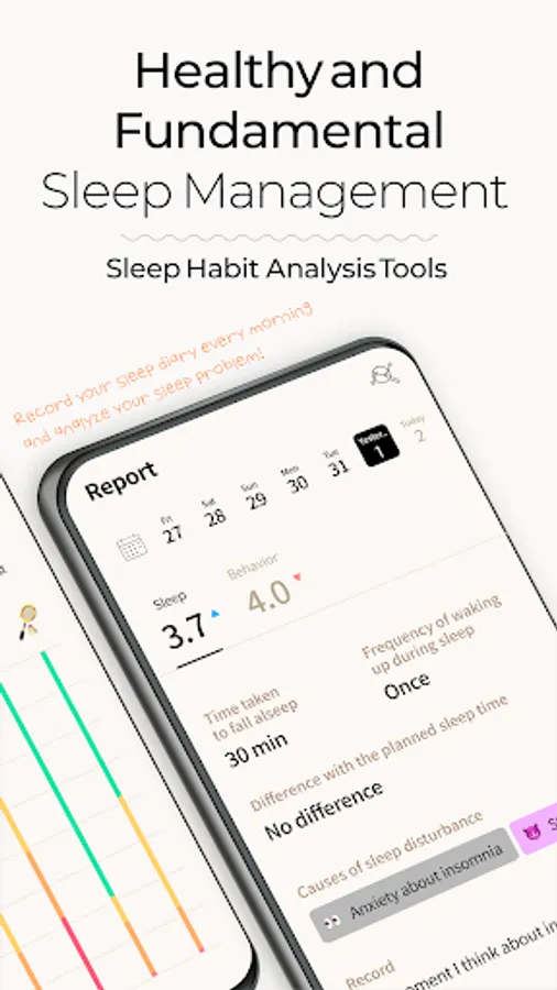 Sleep is complex. Check your behaviors during the day and the environment of the evening and record your sleep. When the data is accumulated, we analyze what caused you to sleep badly.