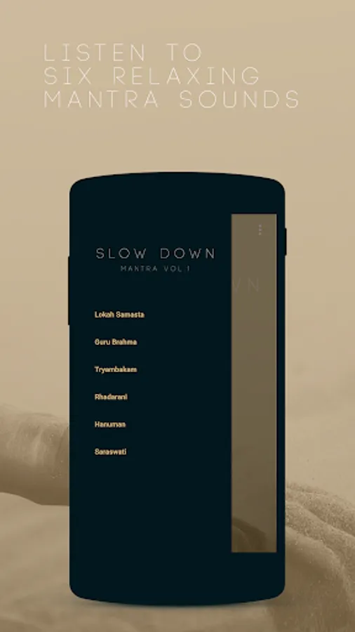 The Slow Down Mantra has a playing time of around 35 minutes, divided into six mantras. Every single mantra has a so-called loop effect, i. e. each mantra is repeated as long as you interrupt it. The app can be downloaded for free. Further costs do not arise in the app.