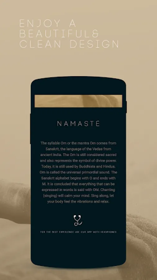 For the app itself, the sign "Om" was deliberately chosen. It is the oldest mantra and is still considered to be sacred for the symbol of divine power. Om is called the universal primal sound. Depending on which grammatical doctrines and / or spellings one follows, the Sanskrit alphabet begins with the O and ends with the M. It is argued that with the Om everything that can be described in words can be expressed.