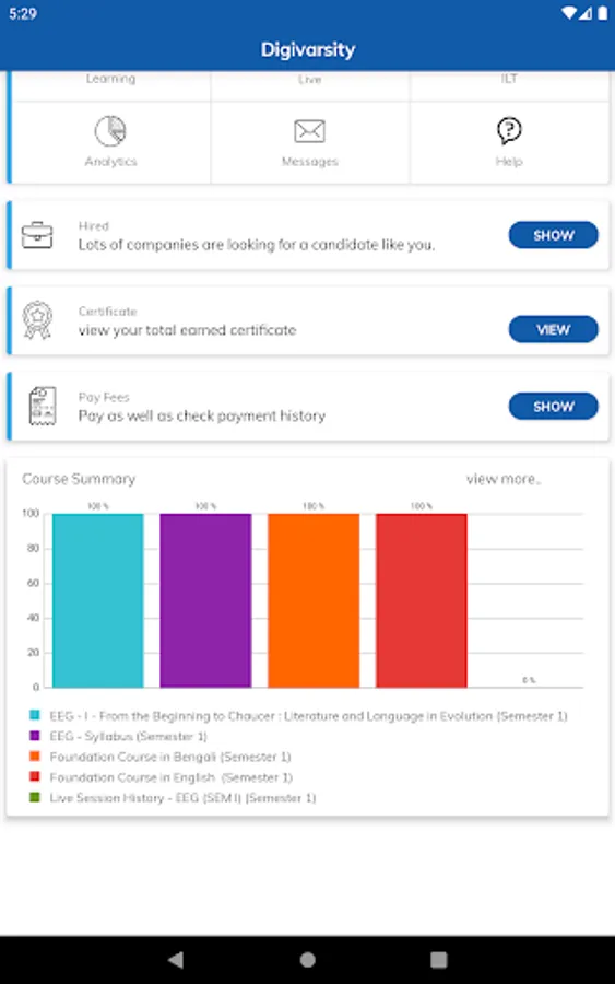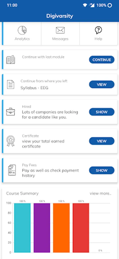 Digivarsity has revolutionized the distance learning by effective use of curated audio-visual content. The app has the ability to deliver the courses in multiple languages. The students can access the audio-visual content on their smartphones, attempt self-assessment tests, upload assignments, get calendar alerts, pay fees online and raise a trouble ticket using the app.