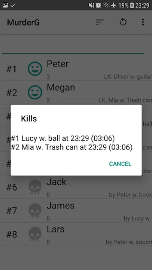 If you don't know the killer game, you can read about it on https://www.spielewiki.org/wiki/M%C3%B6rderspiel (German)