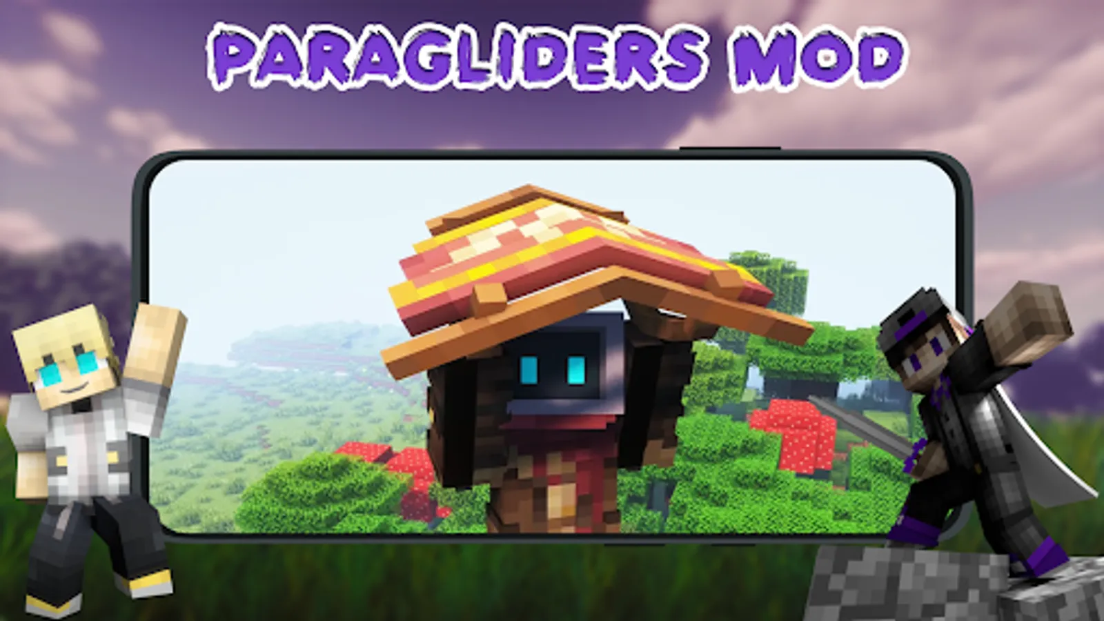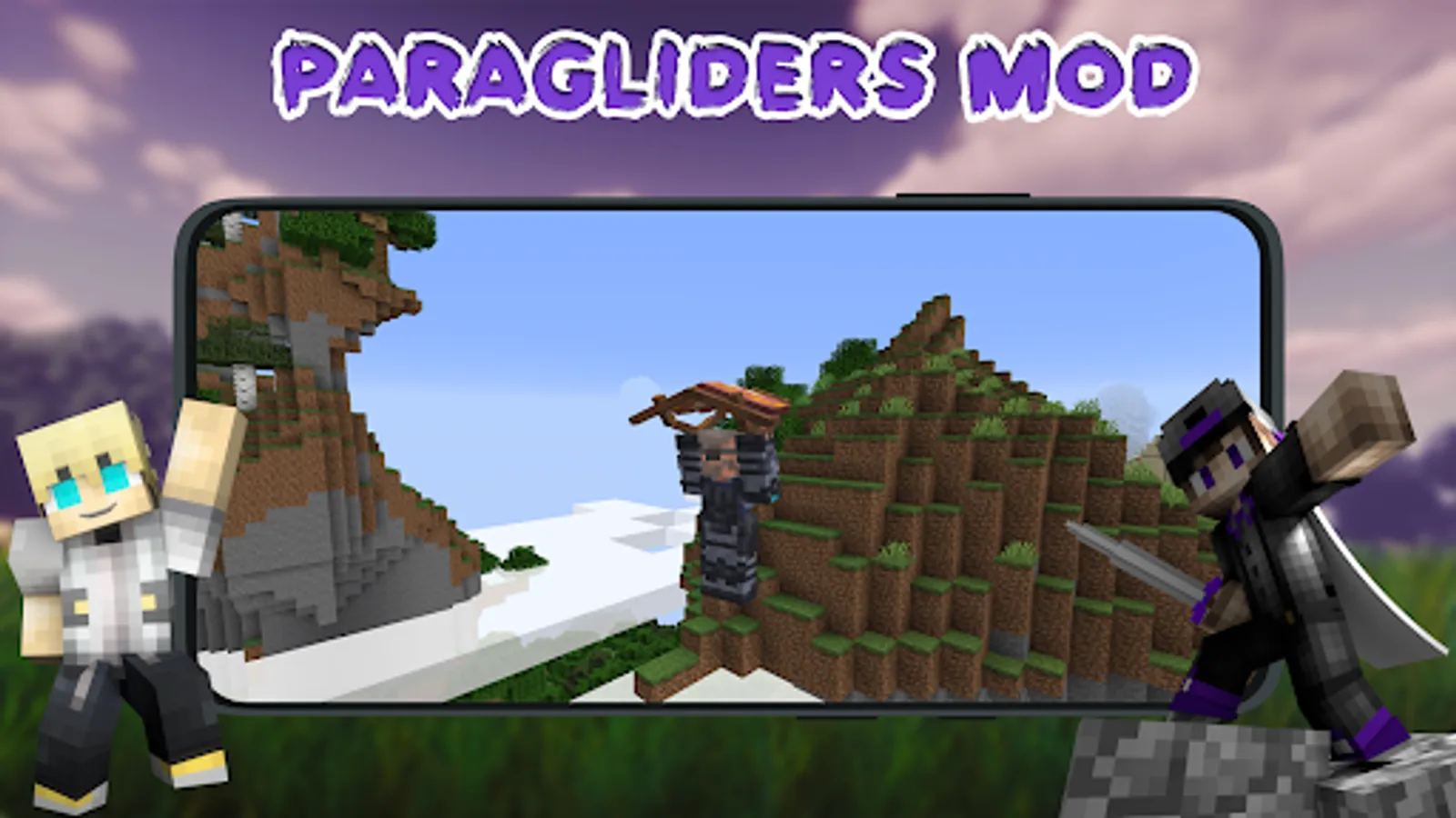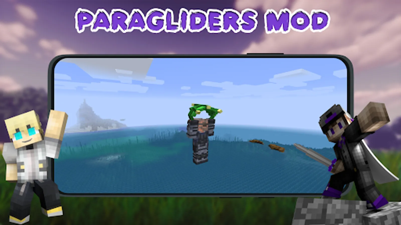 Our Paragliders Mod for Minecraft PE is compatible with other mods as well! And it is supported by playing online with friends. So you can download this modification, which will be a nice addition to traveling to the mountains of Minecraft.