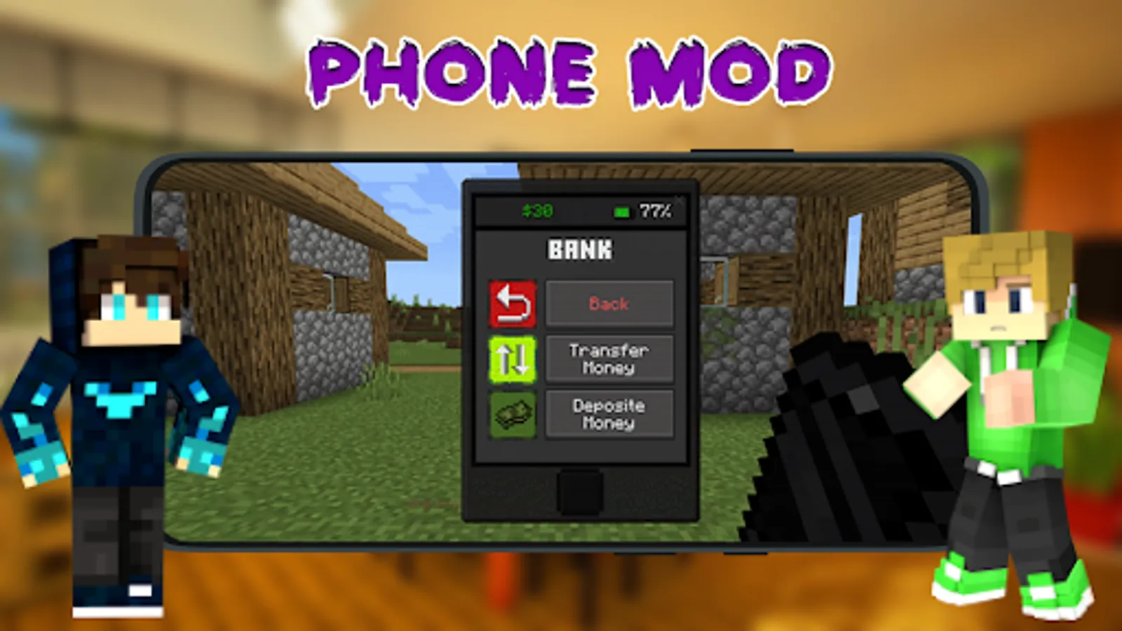But let’s get back to the Working Phone Mod for Minecraft PE has an application store (app store), where you can buy different apps with the internal currency of the addon. But the bank app in our add-on is free as you need it to transfer money and receive it, as well as get cash. To get it you need to exchange iron ingot, gold ingot, emerald or diamond. Moreover, there is a store where you can easily buy weapons, drops, etc., of course, for money in the Working Phone Mod for MCPE.