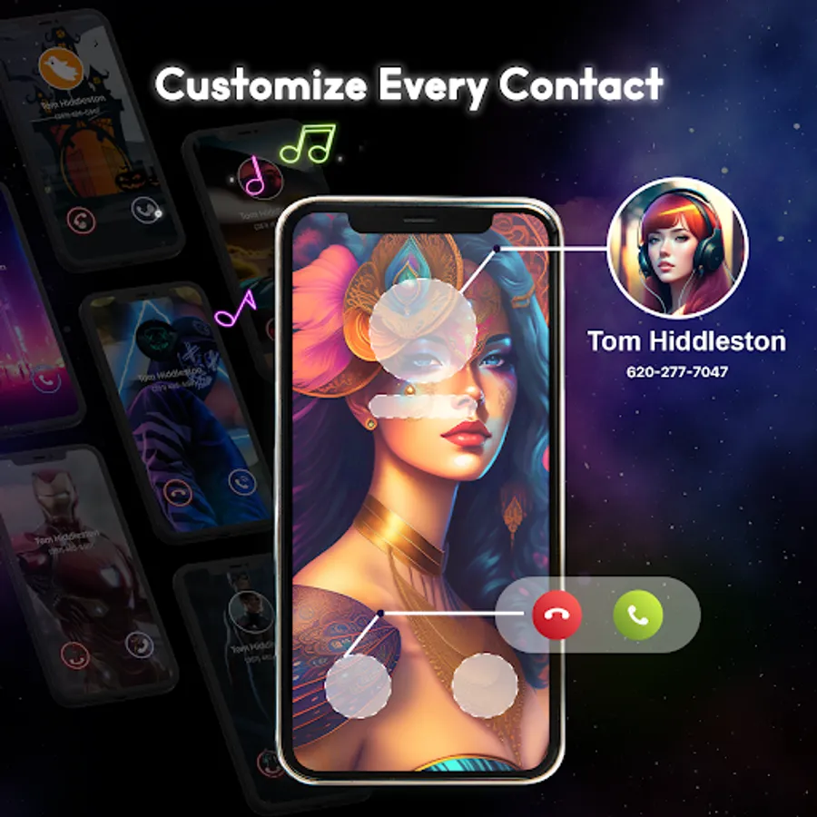 Customize your own call screen to color call screen based on your preference. There are plenty of calling icon themes, avatar icons and color screen backgrounds or from your gallery for you to mix and match your preferences. Elegant images can be set as the caller's background, adding a personal touch to your call answering experience.