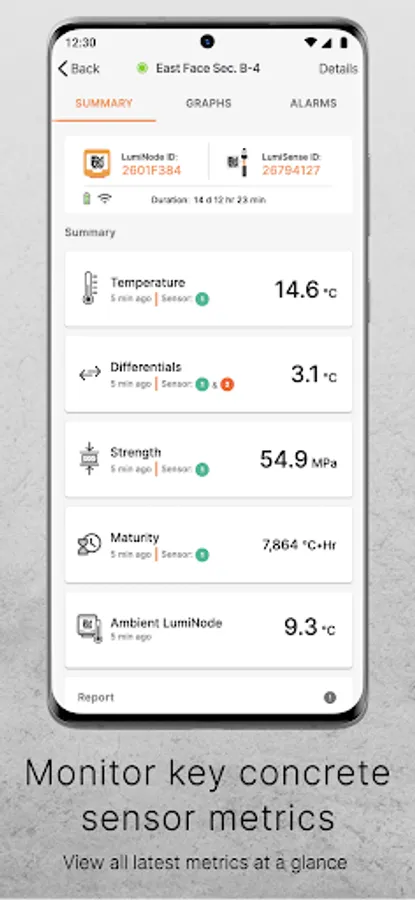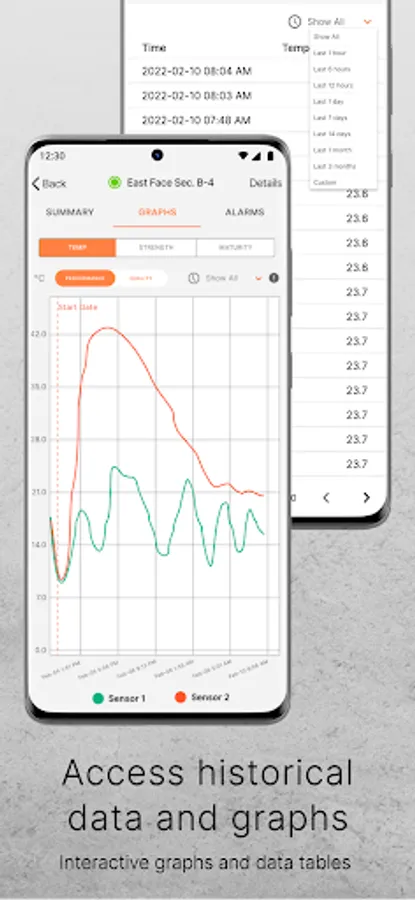 - Interact with real-time and historical data through temperature, maturity and strength graphs