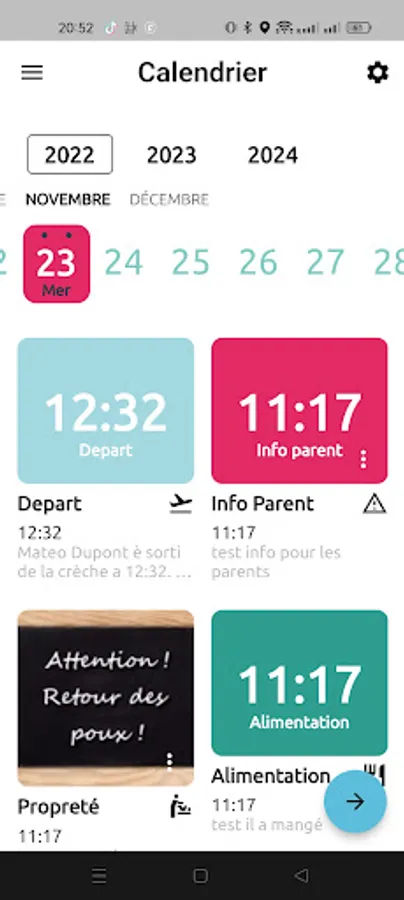 Summary of the activities of the little ones, anecdote of the moment and real-time communication with the nursery are all wishes made possible by the Lutin Rouge application.