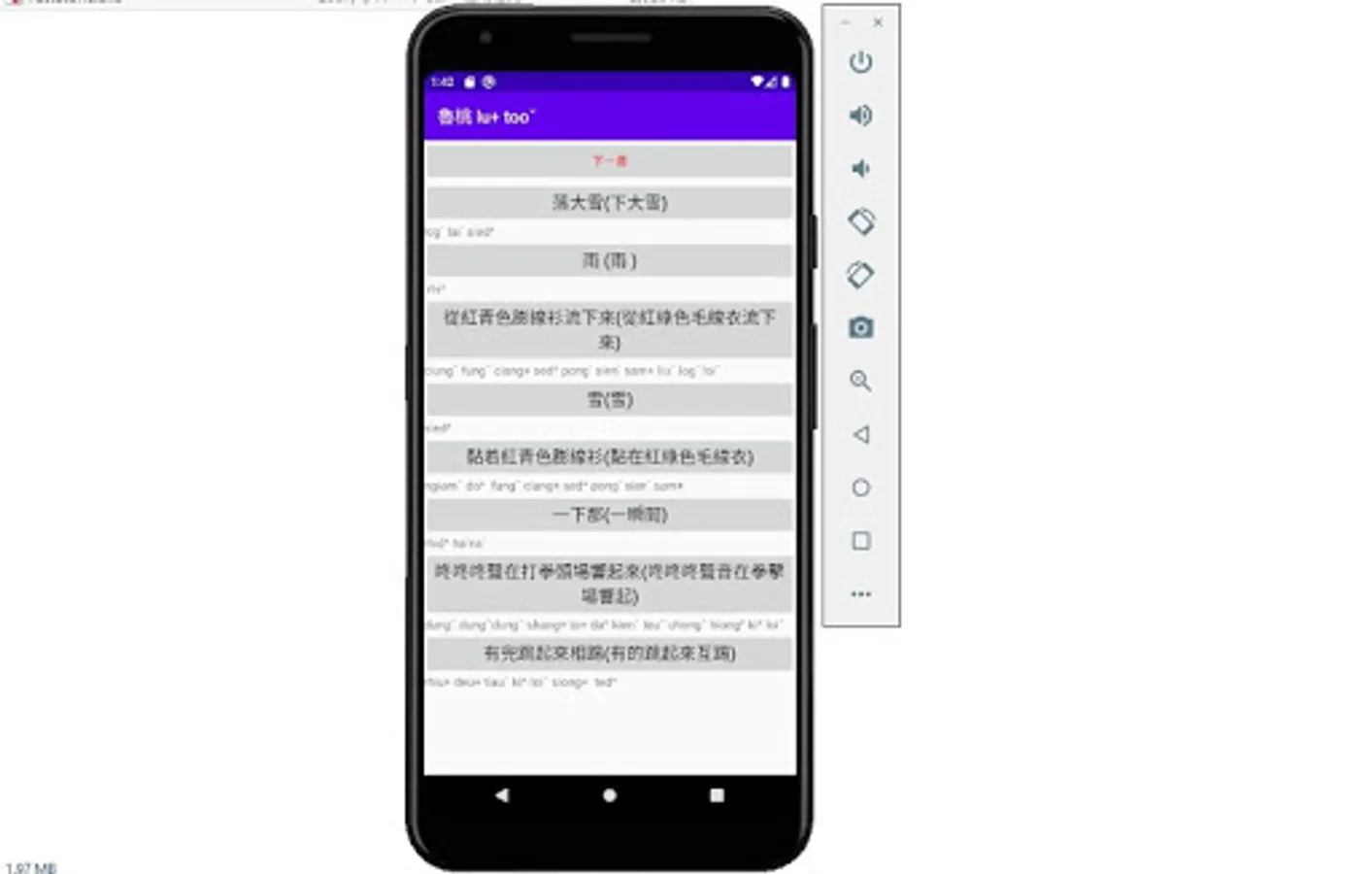 The new sound poems of Hakka dialect in Dapu dialect, as long as you press the gray button, there will be a Hakka dialect in Dapu dialect. If you press the button too fast, there will be no sound. As long as you restart the app, there will be a sound.
