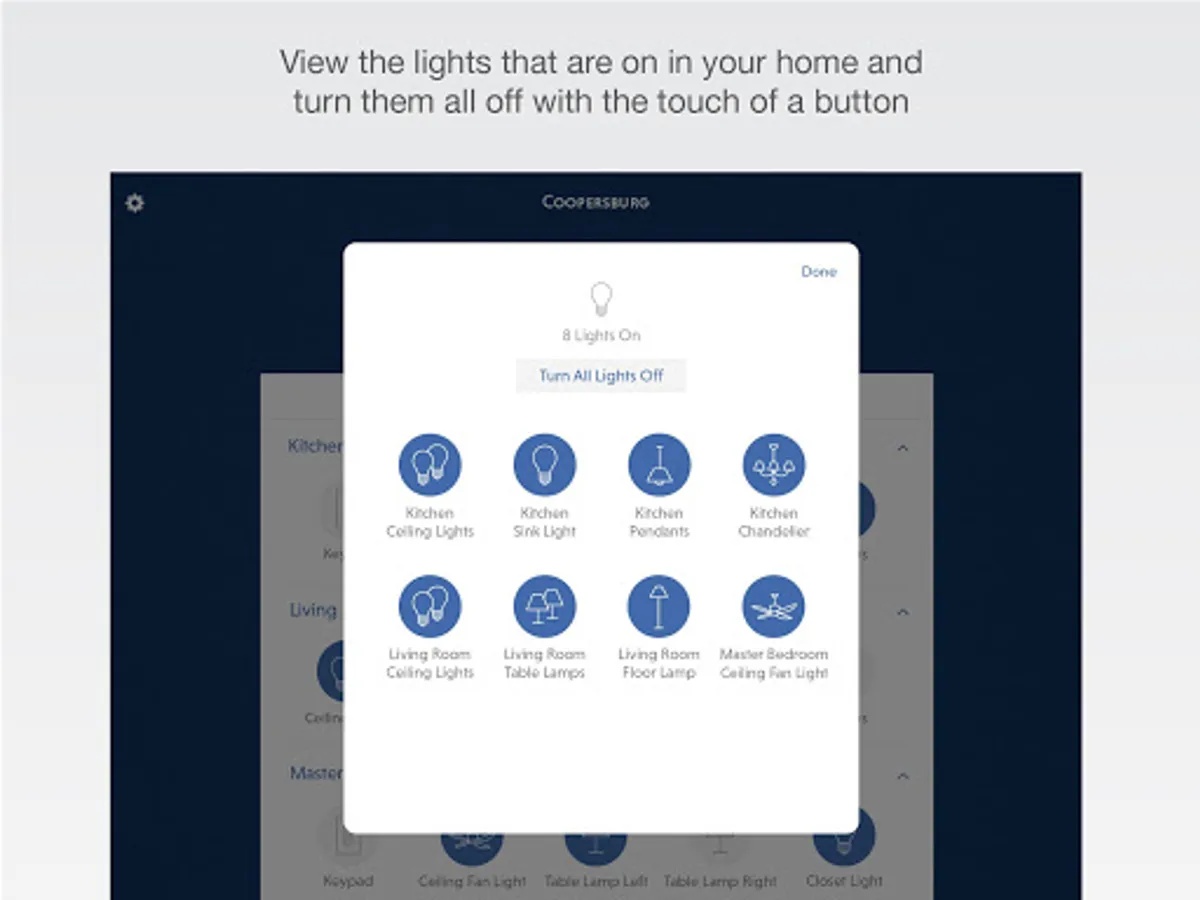 This app requires a Lutron total home control system (RadioRA® 2 or HomeWorks® QS) programmed using the appropriate version of design and programming software along with the Lutron Connect Bridge.*