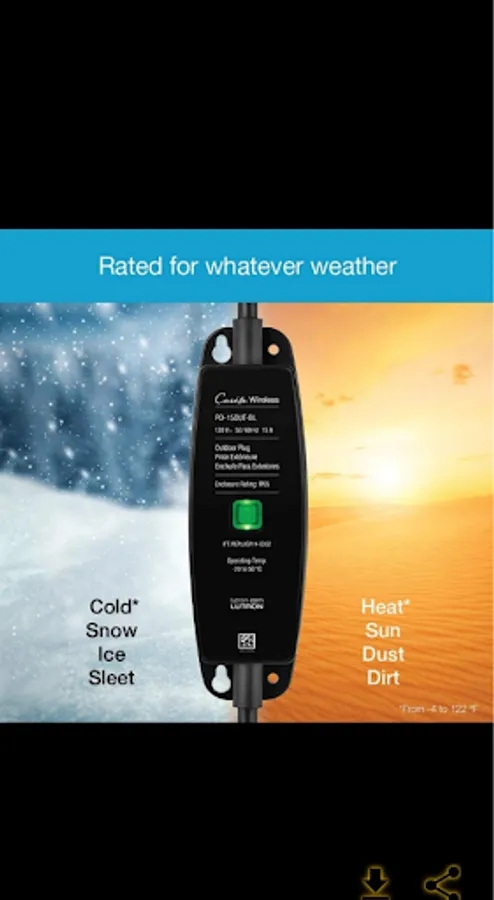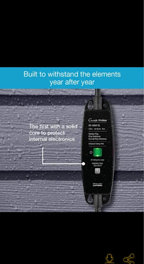 • WEATHERPROOF+: lutron outdoor plug guide IP65 rated; built to protect against severe rainfall, dust, and dirt