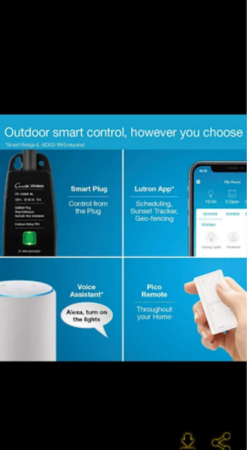 • MEET YOUR SMART YARD: lutron outdoor plug guide Experience the delight of returning to a home alive with light; perfect for patio string lights, landscape lights, holiday. lutron outdoor plug guide lights (up to 1,000 ft!), pond or fountain pumps, and more