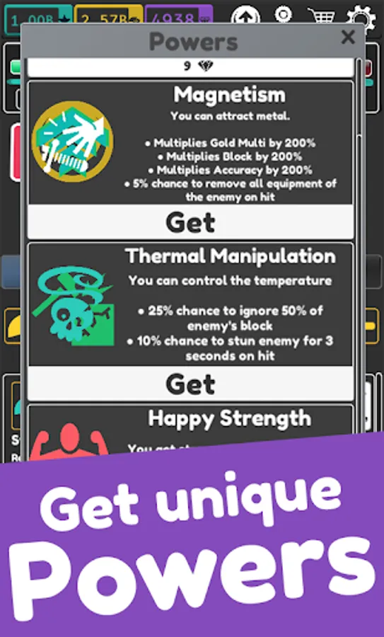 Idle Superpowers is a roguelike idle rpg where you are a superhero who can get multiple superpowers that are combinable and synergize with each other!