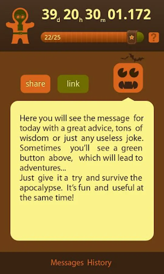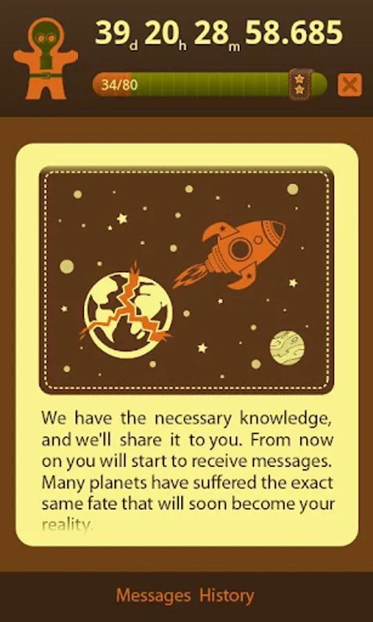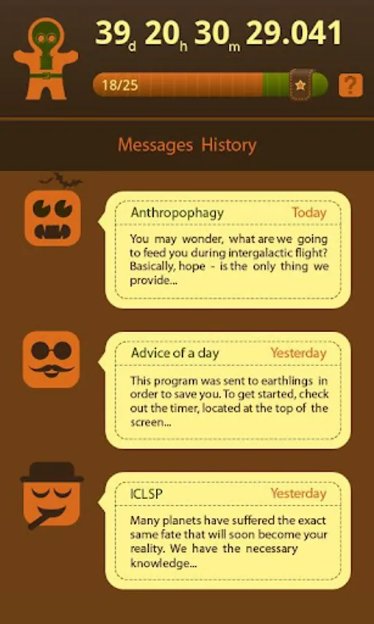 End-of-the-world countdown timer will help you to enjoy the last moments that constantly slip out from your hands. The alien intelligent life will guide you until our rescue team arrives.