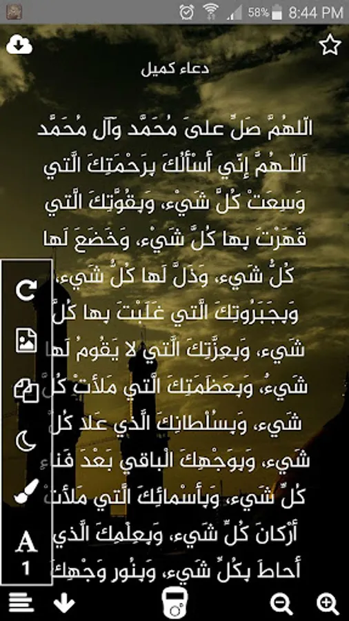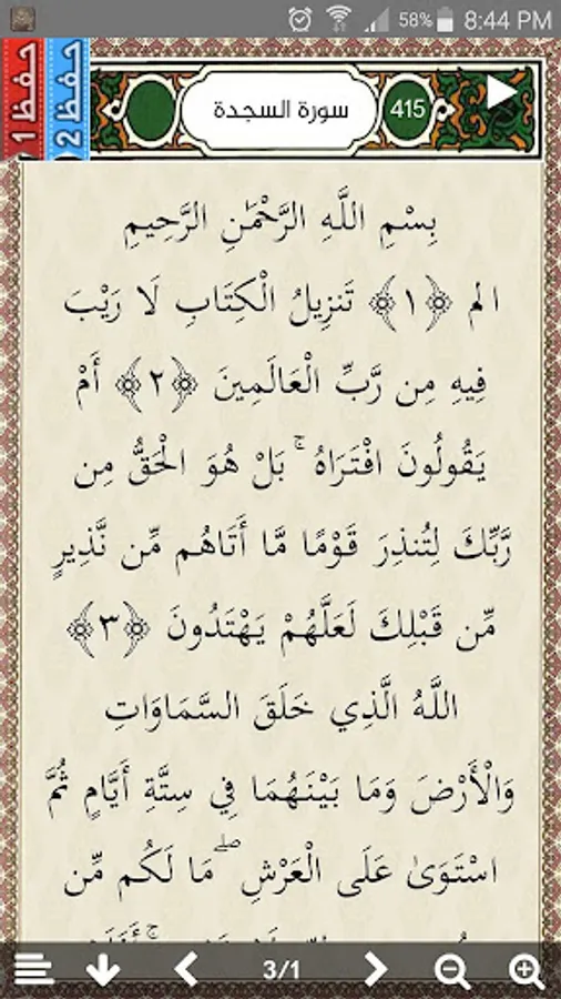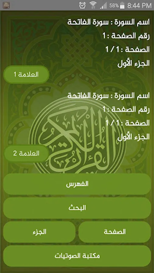 - Reading page (the Noble Qur’an + supplications, visits ...)