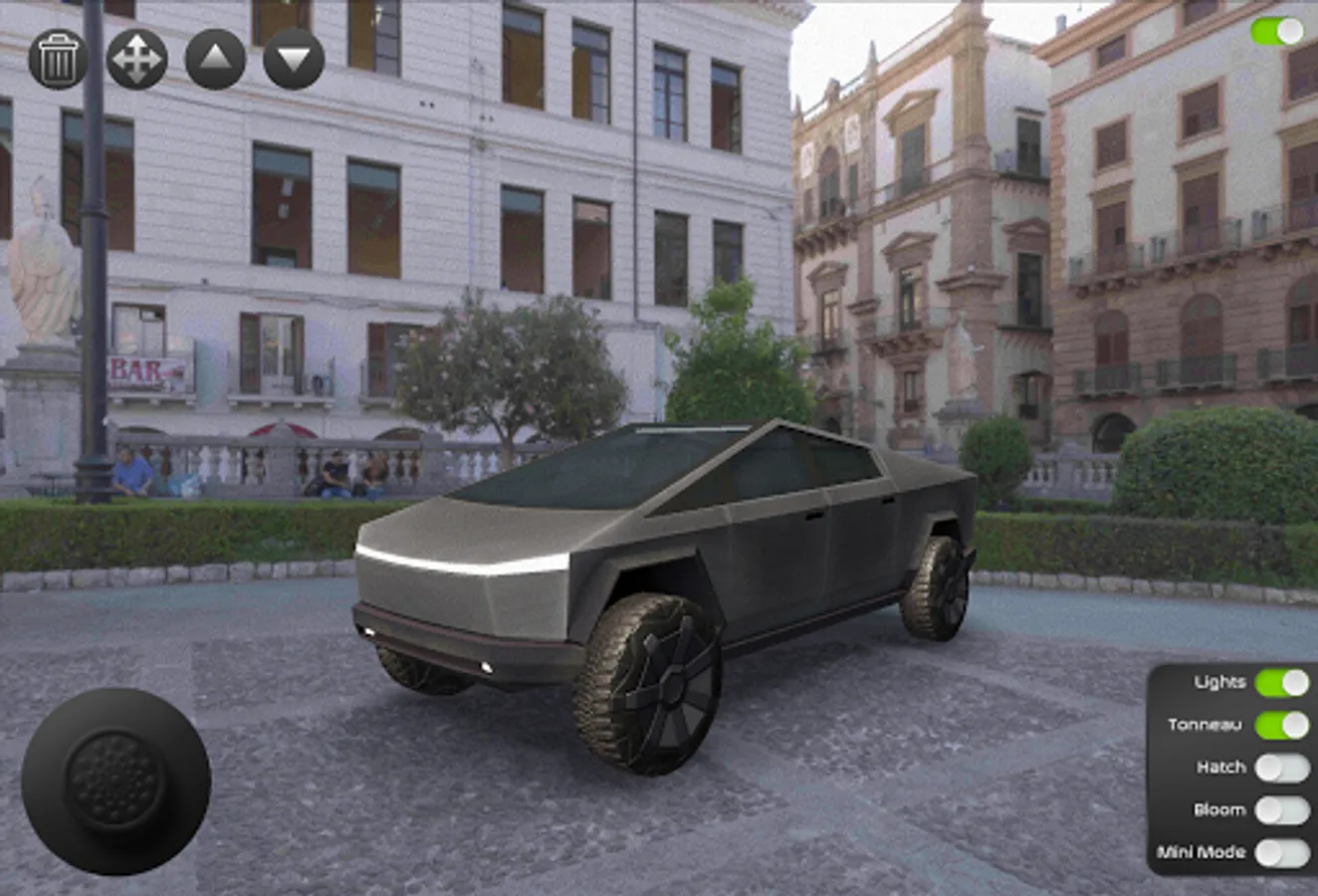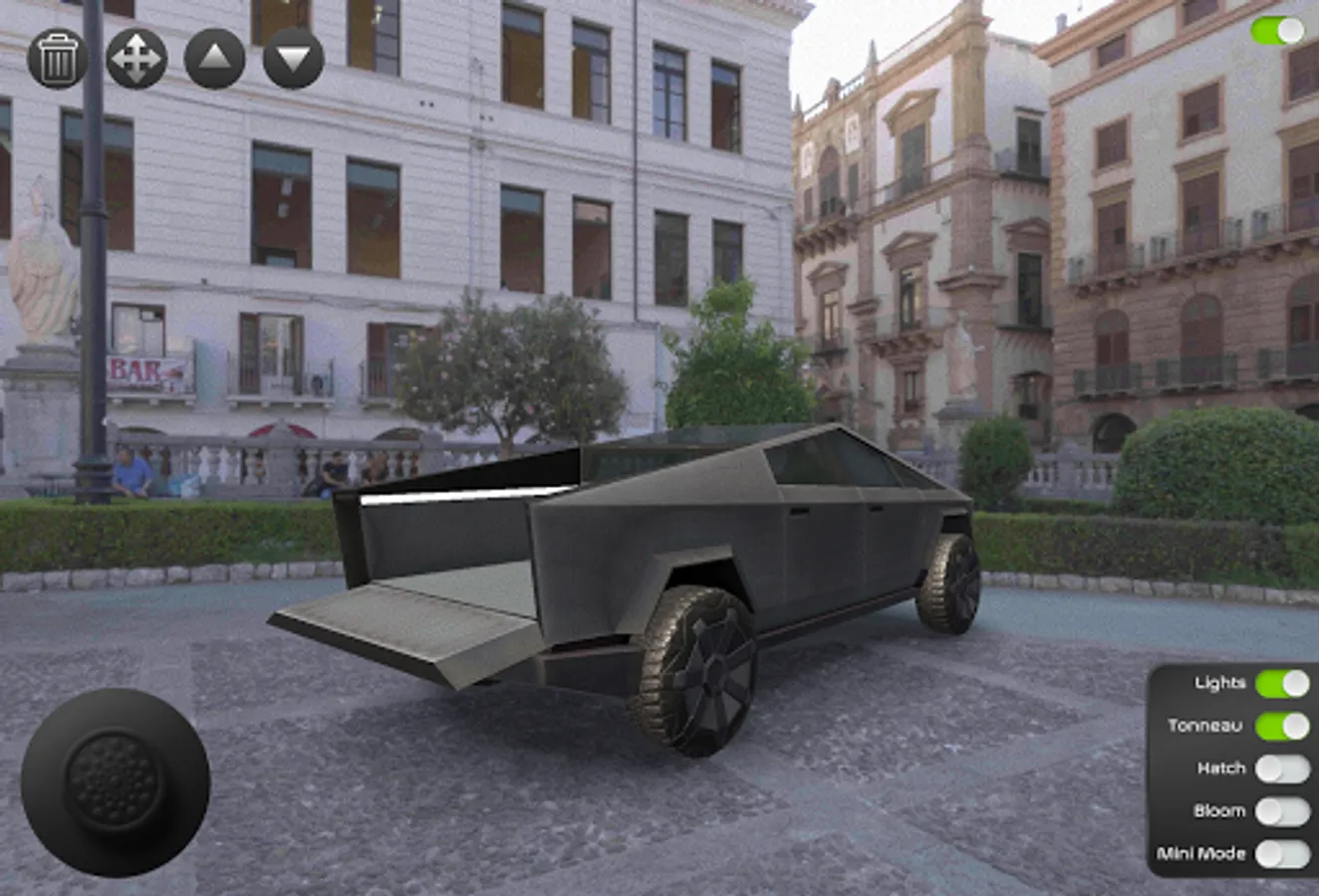 Interactive controls allow you to drive, control, and rotate the Cybertruck in the world around you using Augmented Reality.