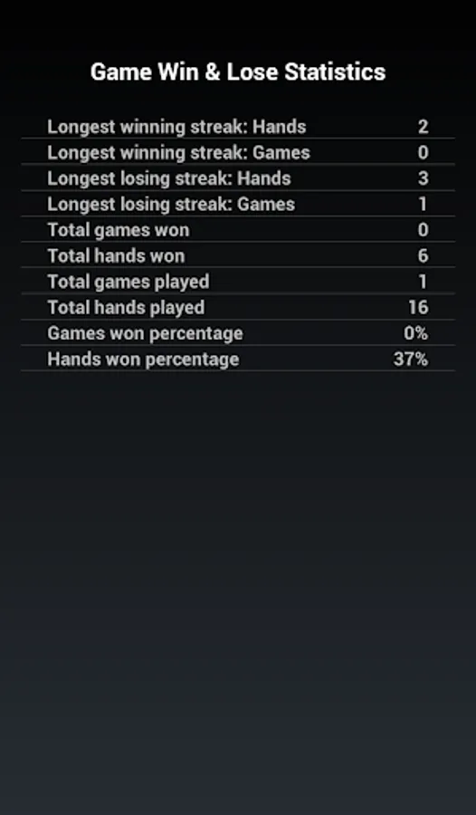 The game keeps up with your winning and losing streaks, number of games played, won, and lost. Beat your records! Beat your friends' best scores!