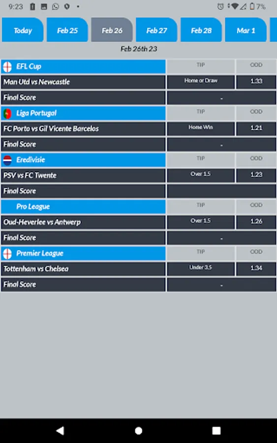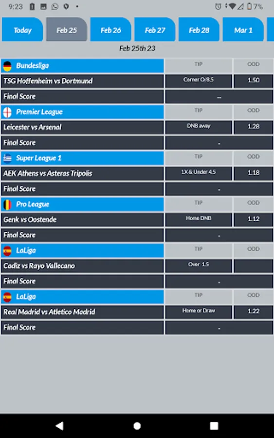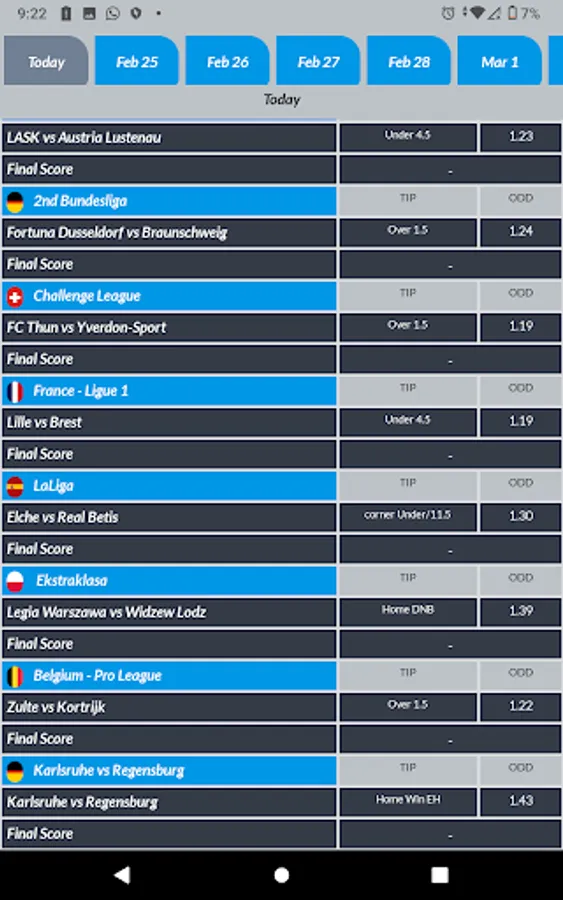 Every betting predictions of this app can be a result of statistical analysis from more over 250 international football leagues and tournaments around the world.