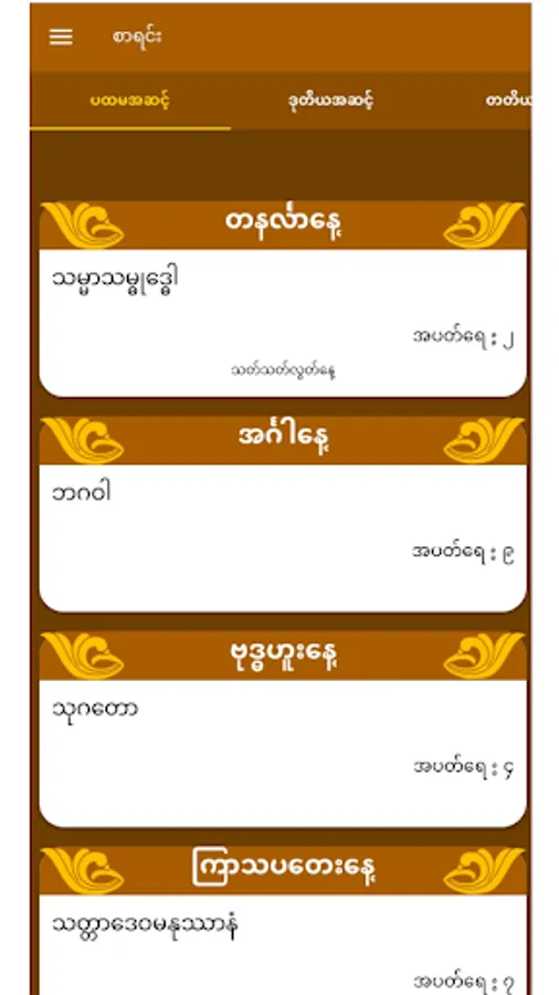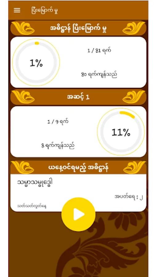 This is a life-style app, which helps the Buddhist devotees especially in Myanmar. In this version, we have fixed some spelling problem in Burmese alphabet based Parli words. The app can only be started on Monday if you are a total new user. If you have your own Vow or Koe Na Win (ကိုးနဝင်း) started already, please go to your phone setting before opening the app, turn off the Automatic Date-Time option, change the date to the day you started your Vow and re-open the app. Then you can close the app and change the date to current date. By then, you will be able to continue your Vow as expected.
