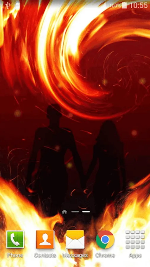 Turn on the fire alarm, because we have created the best Fire Live Wallpaper! The magnificent fire vs water themes will win your heart – backgrounds with burning flames of fire will dazzle anyone who takes a look at your screen! Shining bright blue and purple flames are all you need to make your mobile astounding! This free background wallpaper app for Android is an absolute must have so do not miss it! Enter the fire zone by setting free fiery backgrounds of the burning eye, a fiery silhouette or just fire flames flickering all over your phone screen Dare to put dangerous fire images and burn everything in your way. Enjoy the smoking hot app! The smoking skull images in flickering flames will make you feel so cool and dangerous! Play with fire and watch the dancing flames pics with floating particles! The parallax effect of fire will illuminate your screen like never before!