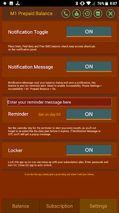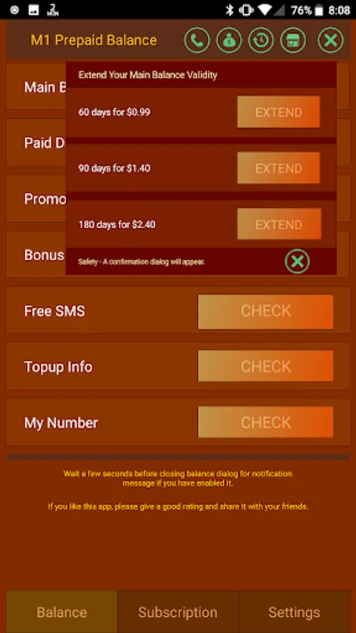 One Tap check your M1 Prepaid MCard Balance, automatic runs the USSD code. No more hassle checking your MCard balance!
