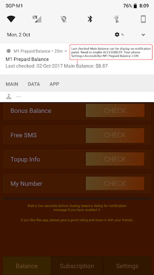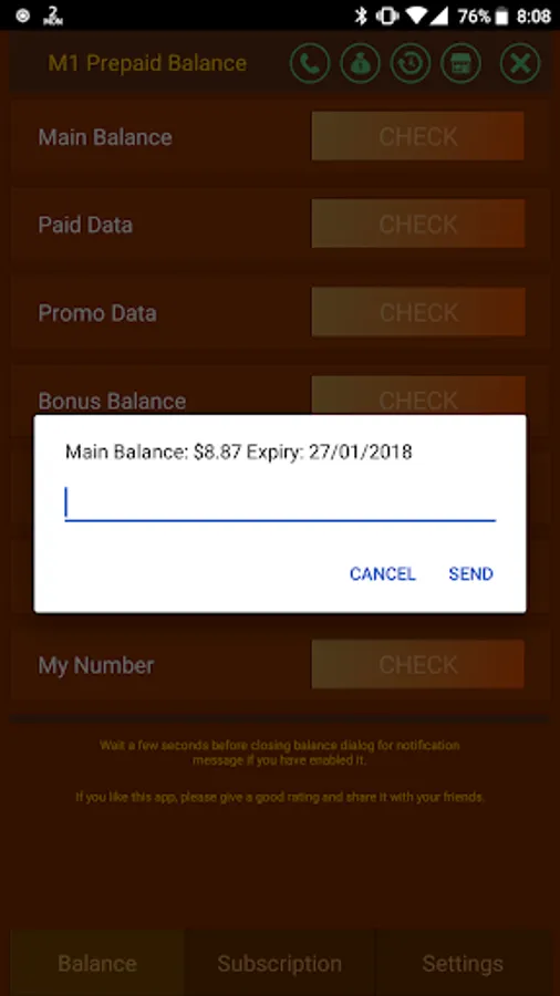 This app is for checking Singapore M1 Prepaid MCARD balance.
