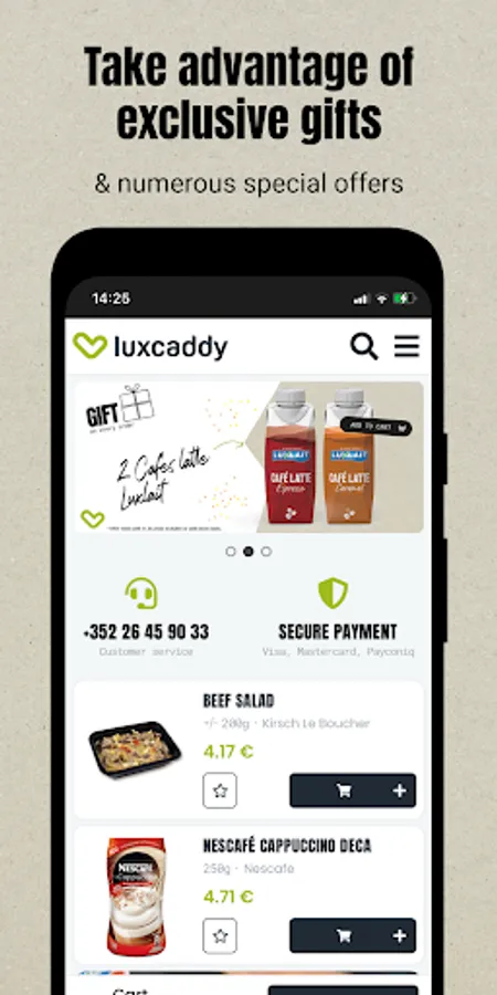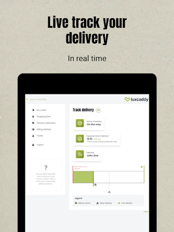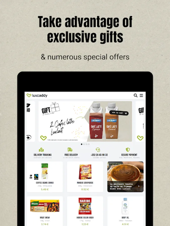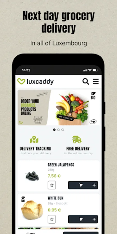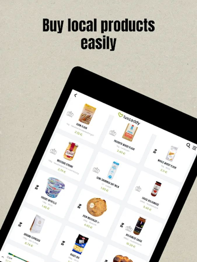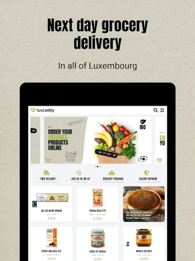 Have your groceries delivered the very next day EVERYWHERE in Luxembourg by ordering on the Luxcaddy mobile app.