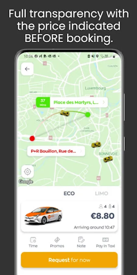 Comfortable, simple and transparent, Webtaxi accompanies you on all your trips in the capital of the Grand Duchy of Luxembourg.