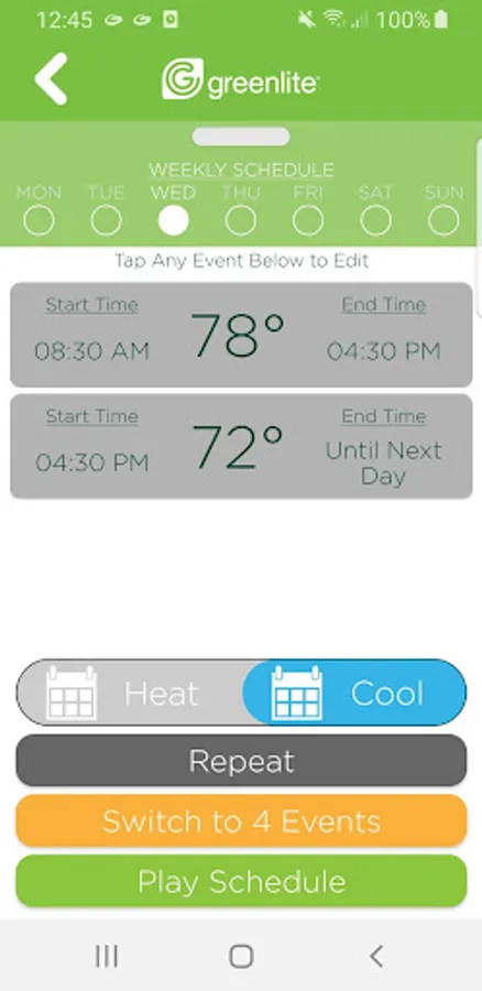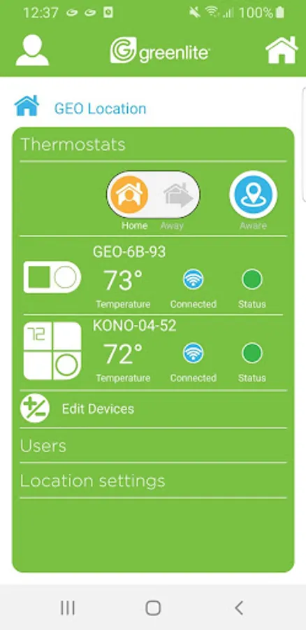 NOTE: The Greenlite app is compatible with G2 and AIRZ thermostats.