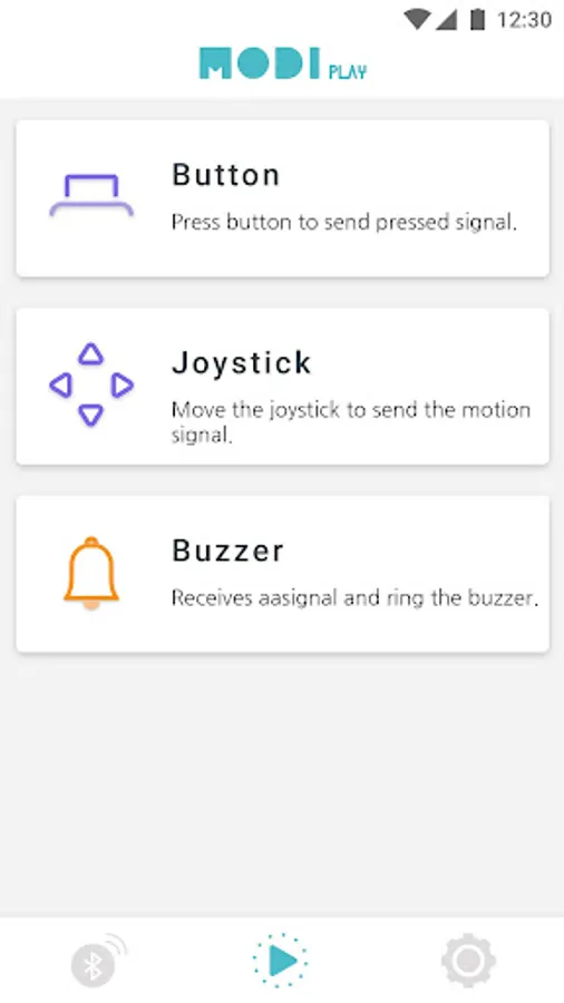 MODI Play allows the MODI and Smartphone to use various activities via BLE communication. By using the Smartphone module function in MODI Play, events can be executed on the signal received between the module and MODI Play.