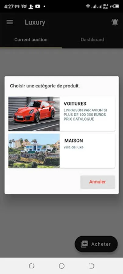 Luxury est une application qui permet aux utilisateurs de participer aux enchères inversés. le gagnant est celui qui propose le prix le plus bas