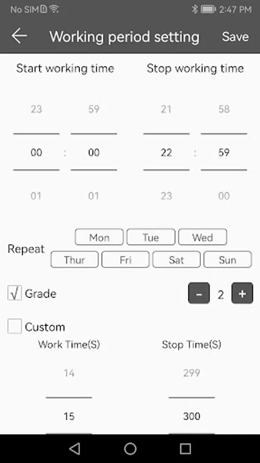 - Control del nivel de intensidad de aroma para cada período operativo único.