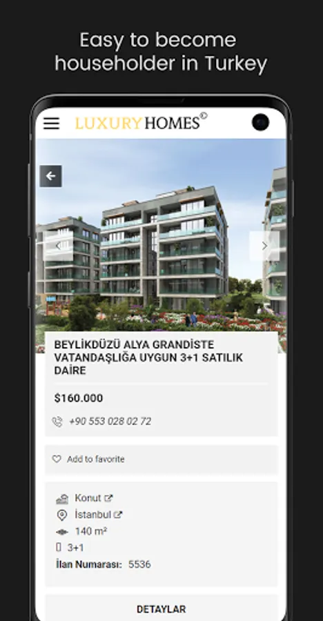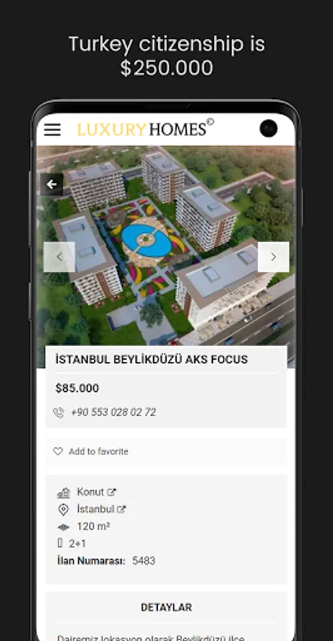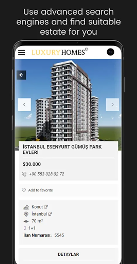 Luxury Homes with luxury apartments in Turkey, villas, hotels, workspaces with the view advanced search methods and purchase. Contact the buttons on the property page.