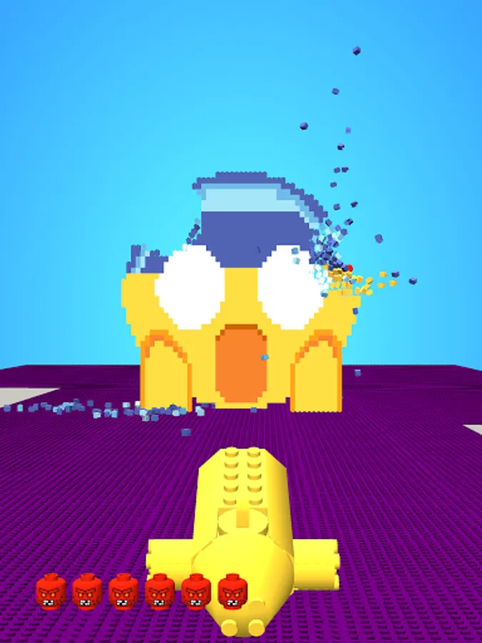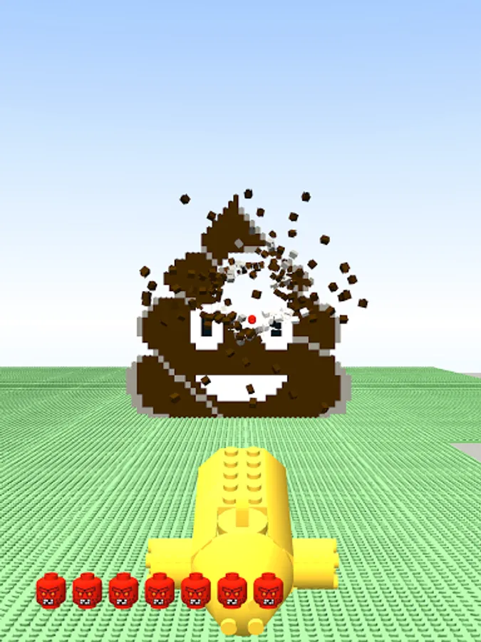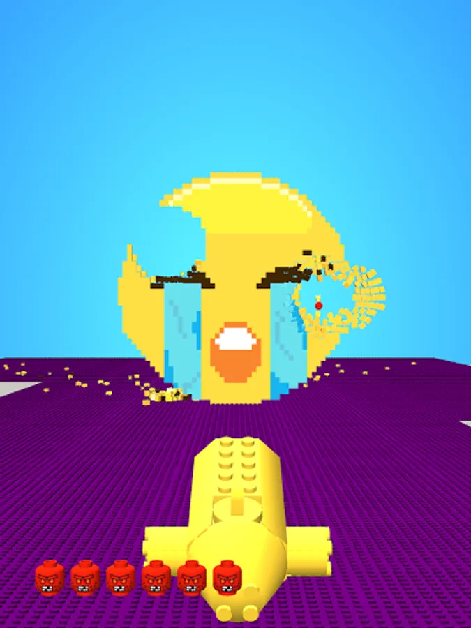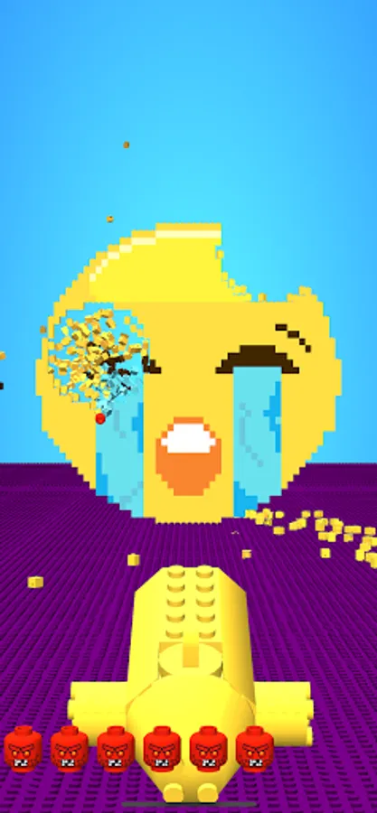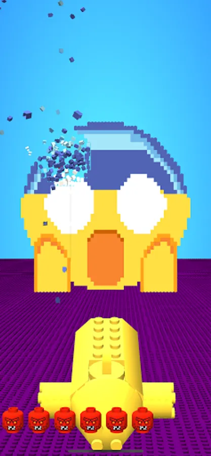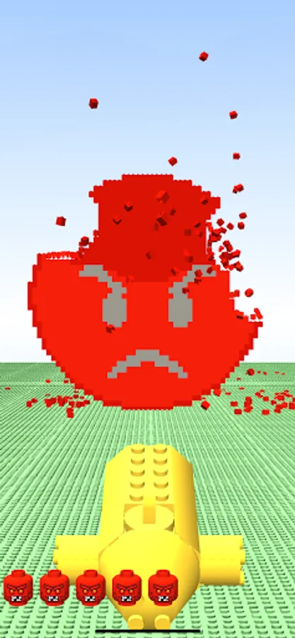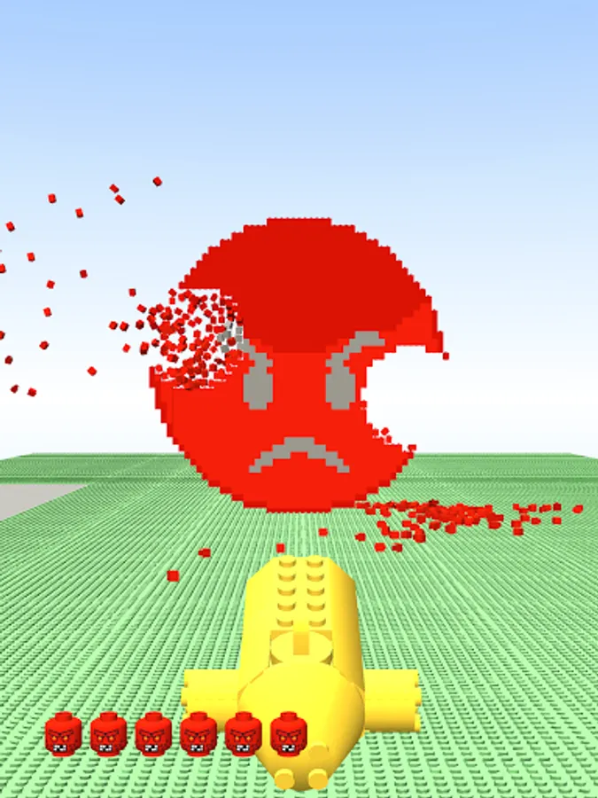 You get to shoot cannons, destroy emojis built of construction set cubes, and watch it all fall down!