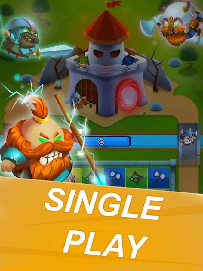There are 5 types of heroes available for the game, three of which attack the enemy's castle and the other two defend their castle.