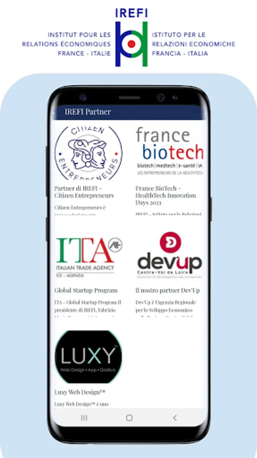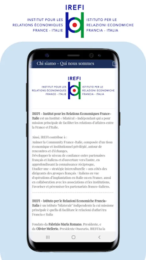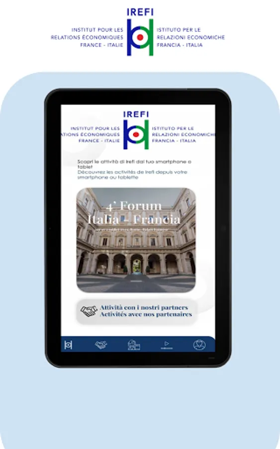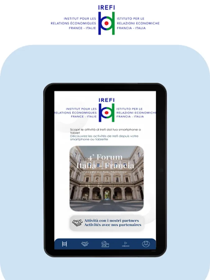 IREFI - Institut pour les Relations Economiques France-Italy is an independent "bilatéral" Institut here at the main mission of facilitating business relations between France and Italy.