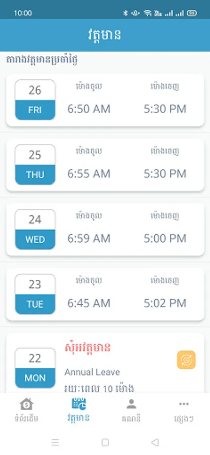 All-in-one for attendance tracking system from daily check in and check out in every location and request absent permission through the application.