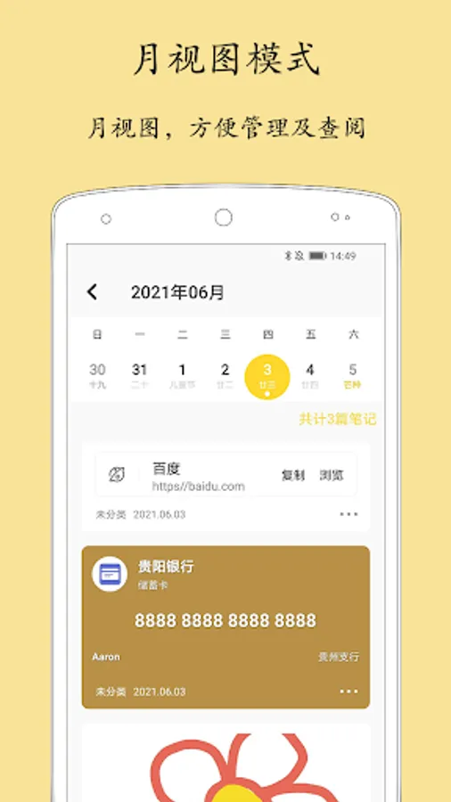 Supports monthly calendar mode to manage your notes, making it easier to check.