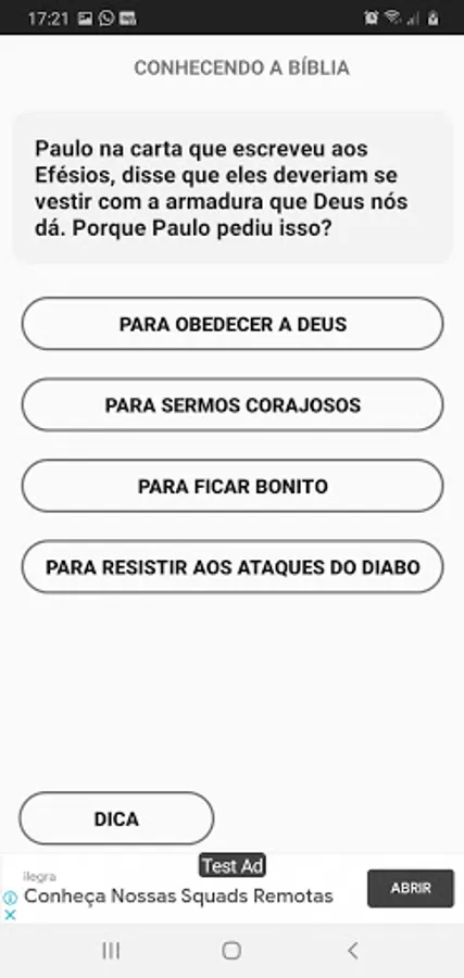 Test your knowledge and learn more about the word of God in a light, practical and fun way through the most complete Biblical Quiz on the Play Store.