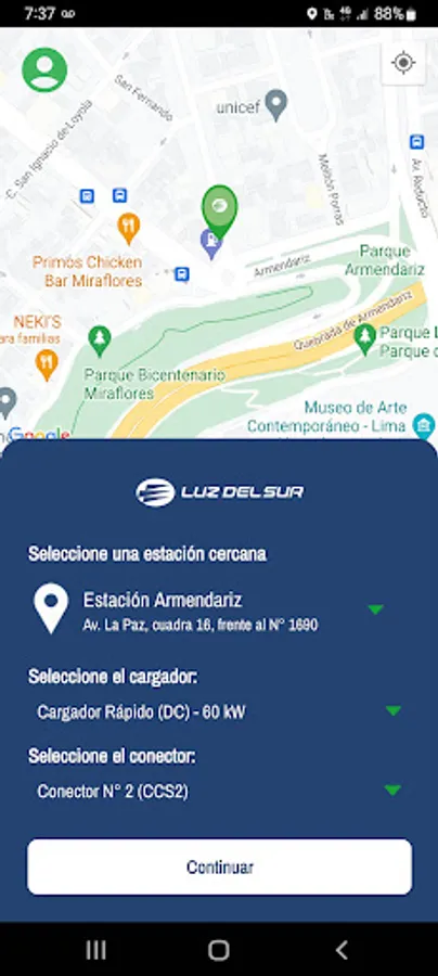 Locate all the electric charging stations in Luz del Sur, recharge your electric vehicle and pay from the app easily!