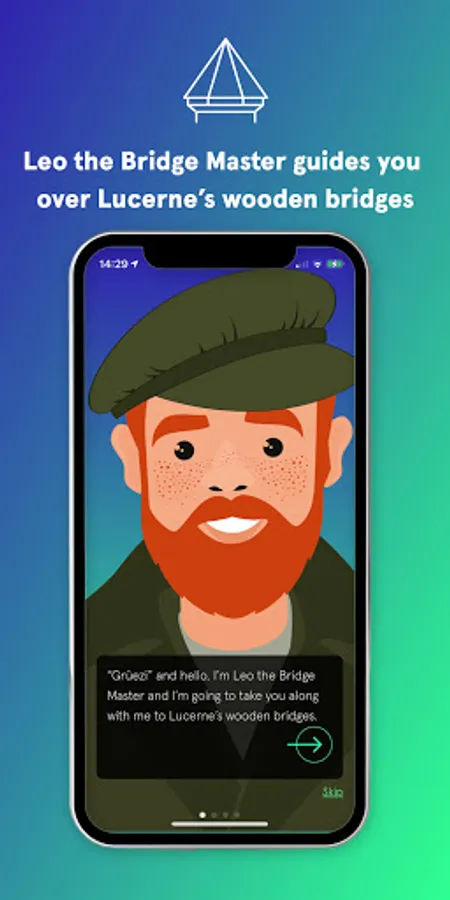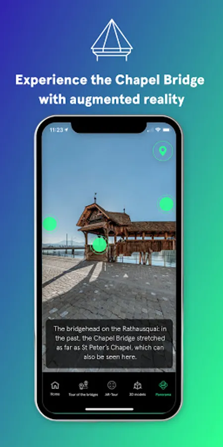 In the Chapel Bridge app, Leo, your virtual guide, accompanies you over the world-famous wooden bridges of Lucerne in the heart of Switzerland: Leo points out all the hotspots to you and provides you with key facts from the past and the present. Using the augmented reality function, scan the important and valuable triangular paintings on the Chapel Bridge and the Chaff Bridge and discover their stories and secrets.