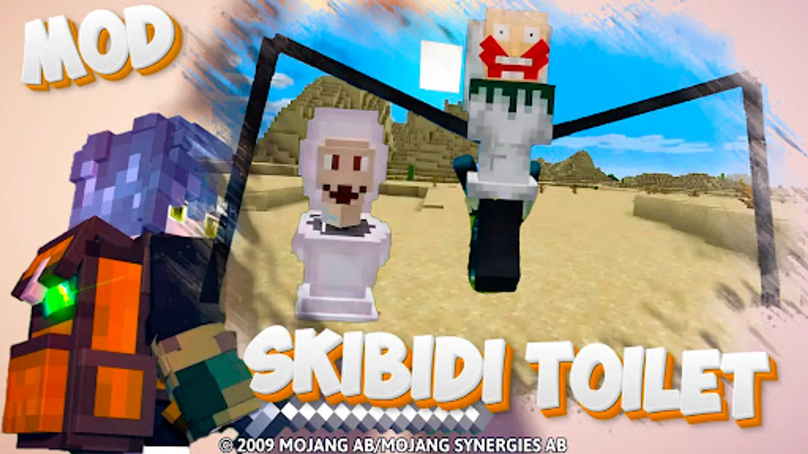 Looking for mcpe Skibidi Toilet Mod? This is the Skibidi Toilet Mod for MCPE game. The Skibidi Toilet Minecraft mod game is a fun and hilarious mod that adds a new toilet to the game. This toilet is not like any other toilet, however. It is a dancing toilet! That's right, this toilet can dance songs move... Skibidi Toilet Mod for minecraft is a new mod that adds two new monsters to mcpe game, Skibidi Toilet and Cameraman, and your mission is to avoid added mcpe monsters while solving puzzles.