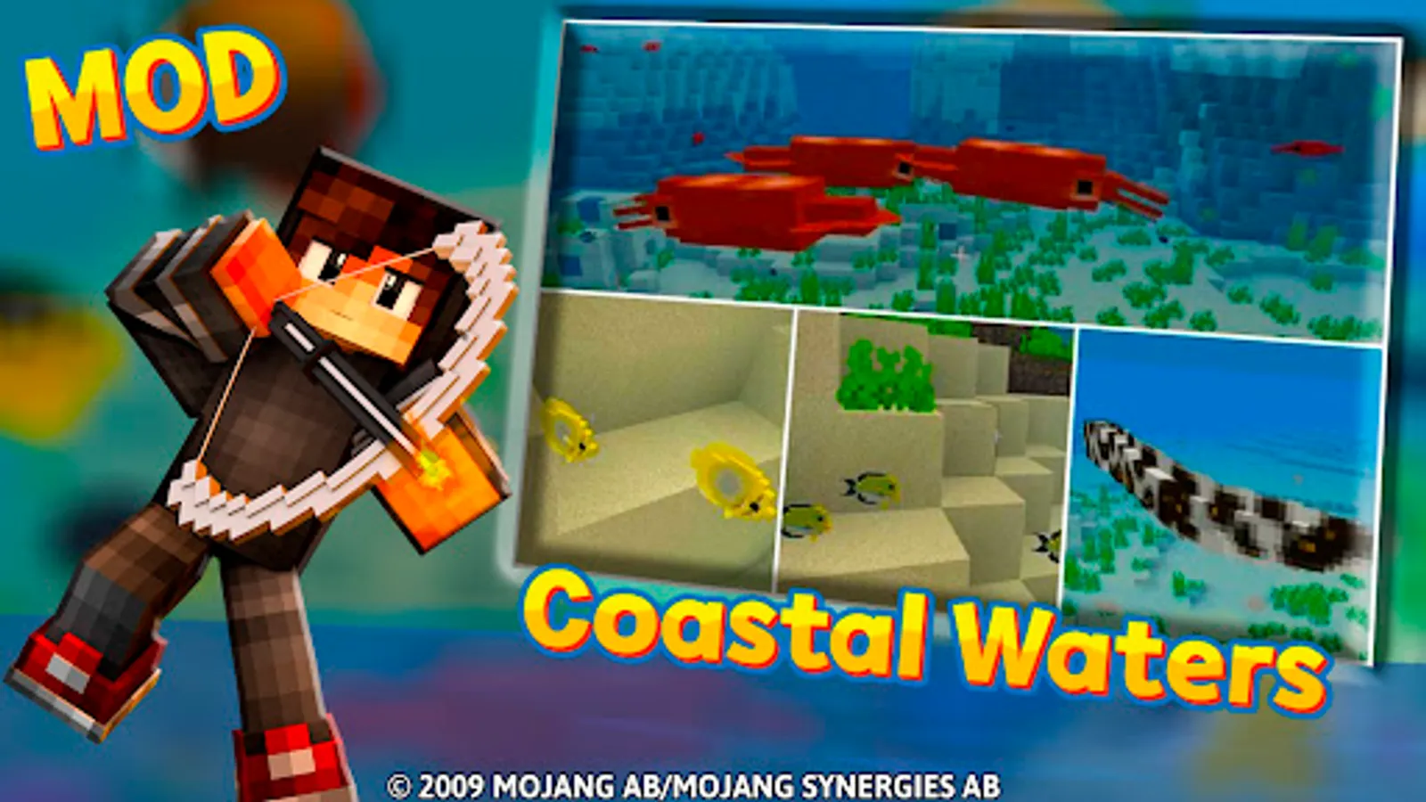 In this Coastal Waters Fish Mods for Minecraft app we have collected a big pack with miencraft pe game skins, that you can get and play with in your game worlds; a big pack of maincraft pe pixel cube wallpapers for your devices. The installaion of included mods, maps, skin packs and textures is very easy: just click install and mcpe content will be auto installed into your minecraft pe game worlds. We hope you will be glad to survive using these new minecraft pe mods, maps and skins. Good luck!